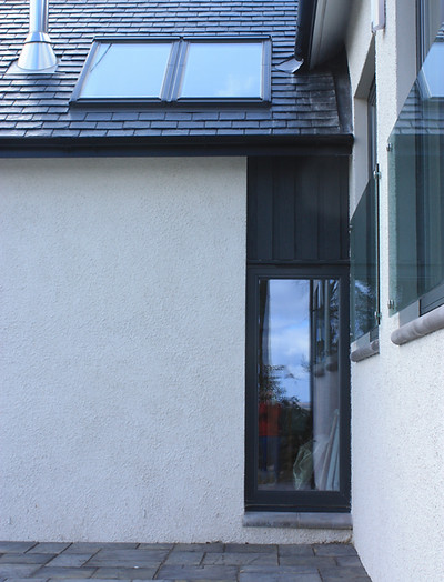 This new build house for a private client is a replacement farm house set in the hills in Inverclyde. The house has been designed to complete a courtyard and take advantage of open views to the south and east. The house is 'T' shaped and features split level with a formal lounge and study accessed of a feature staircase. The house features photovoltaic panels set into the slate roof.